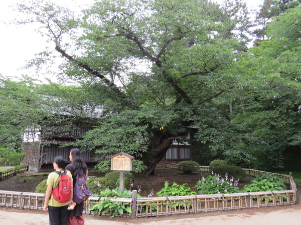 二之丸雨天休憩所旁邊這棵老樹是日本現存最古老的「吉野櫻」,明治15年(1882年)廢城令頒布之後,舊藩士菊池楯衛不忍舊城荒蕪,開始陸續種植櫻花,這是其中一棵,後來市民也加入,現在弘前城共有2600多棵櫻花,成為是日本首屈一指的賞櫻名所。