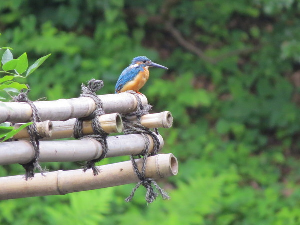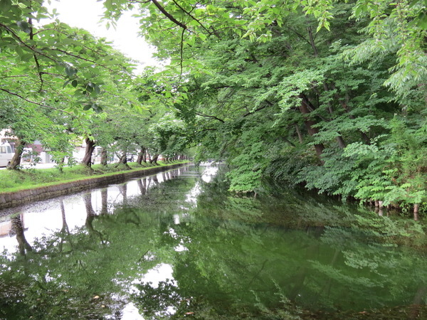 岸邊遍植櫻花樹 ,只是現在看到的是一片綠葉。
