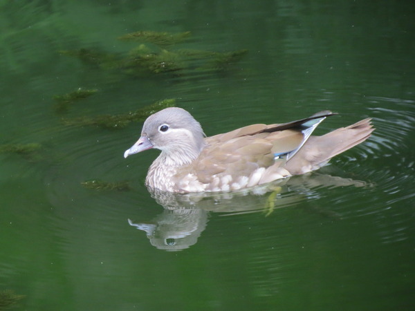 竟然是~~鴛鴦(雌,非繁殖羽),特徵是白色過眼線,灰色鳥喙,好漂亮,沒找到更漂亮的雄鳥。