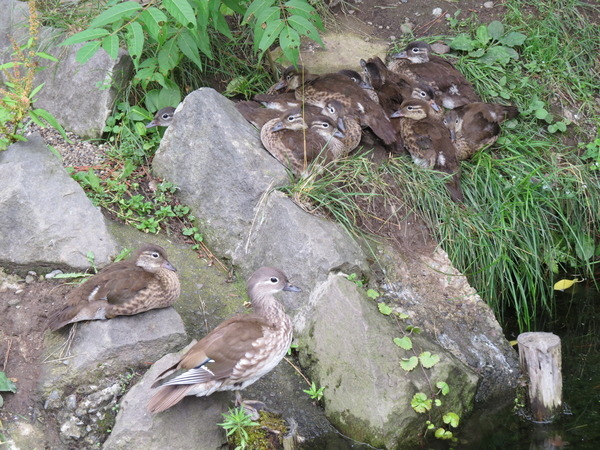 發現河邊有一大窩小鴛鴦,擠成一團。