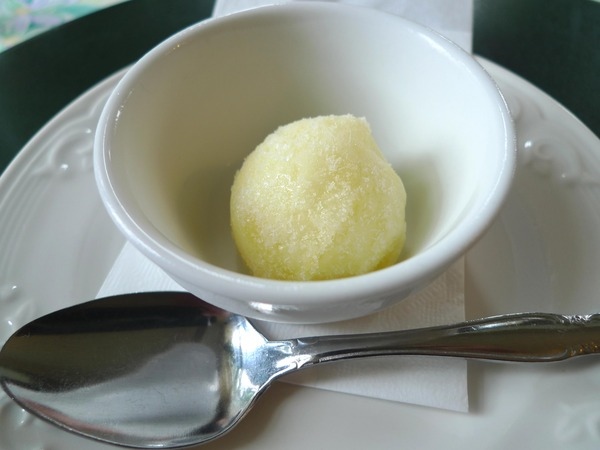 蘋果雪酪:吃得到很多果肉的雪酪,唯一的缺點就是太小球了,好想再續。