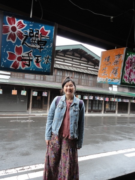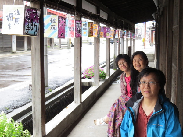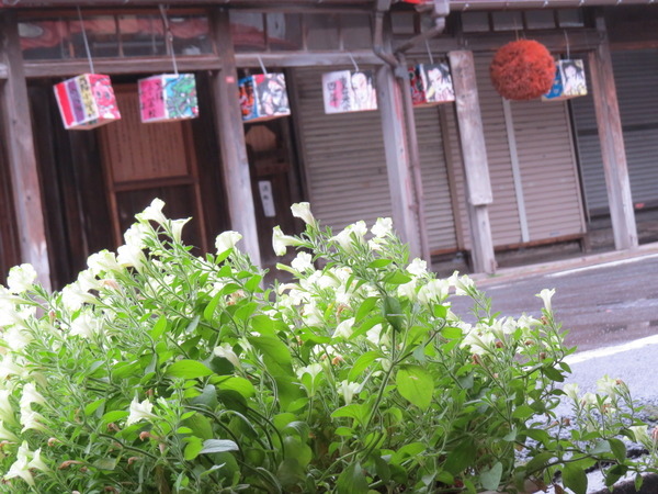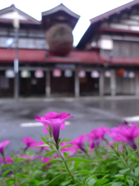 走廊外種了很多漂亮的花,坐在椅子上拍對面的「玉垂」酒造角度剛剛好,正好一邊歇腳,一邊玩相機。