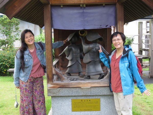 這兩家大酒造中間有一條小巷,走進來是一個小型停車場和舊倉庫,牆壁上有一口「小見泉」~八甲田山和岩木山融雪形成的「伏流水」,兩旁的「鳴海釀造」和「中村龜吉造酒」都是靠這口井釀出好酒的。