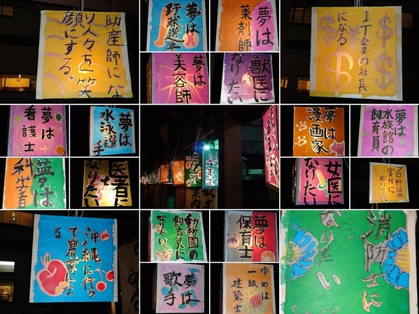 這些燈籠都是小學生的作品,方型的四面中,一面是現成的圖案