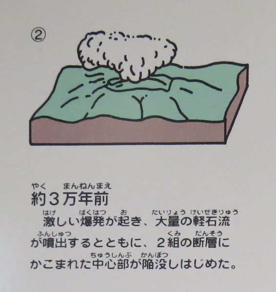 (2) 3萬年前:火山激烈噴發,火山中心陷落。