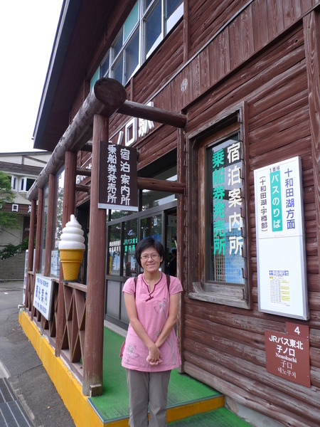 現在再看照片,我們不只不懂日文,連中文也認不得了,車站正門口和公車車頭明明都寫著「十和田湖」,我們應該往「燒山」或「青森」、「八戶」方向才對,還好棕熊有去搭訕,還好有老先生提醒,太感謝了。