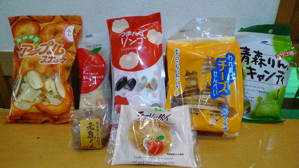 等待的時候,逛逛旁邊的販賣部,商品上面還標著人氣名次,我們一一買來品嚐:中間五種是No.1~No.5,兩旁的蘋果脆片、蘋果糖是我們自己選購的,正餐花不到二千元,零食就買了將近三千元。