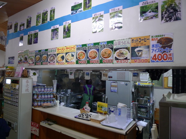 先在入口櫃台旁的自動販賣機點餐買餐券,只有麵食,最貴的叉燒拉麵也只要550円,好便宜,不像台灣風景地區都又貴又難吃,付錢取票之後交給櫃檯,然後靜靜等餐。