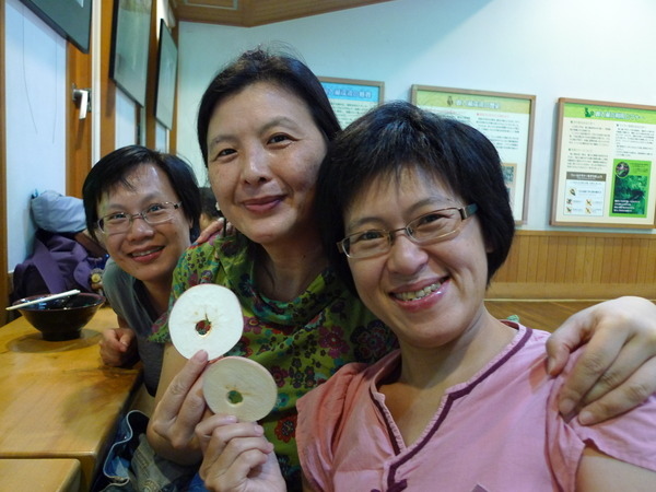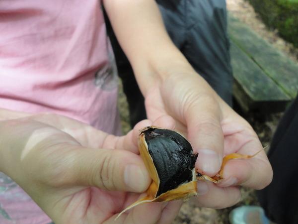 走到這裡大家都累了,拿出最貴的零食(500円)~「黑蒜頭」提神一下,聽說像在吃「蒜頭軟糖」,到底是像軟糖的大蒜?還是像大蒜的軟糖?無法想像,親身體驗一下~~