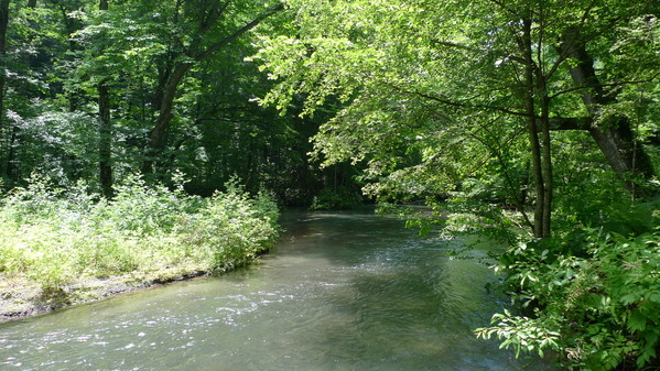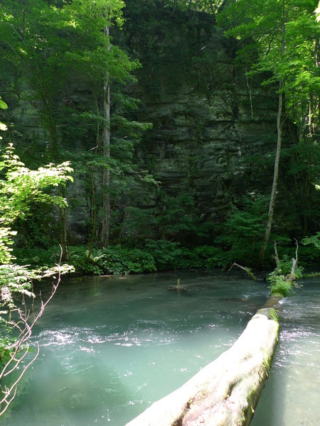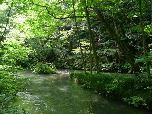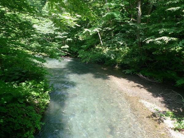 「裸渡橋」上看到的溪景,準備回到河的左岸,開始走進「瀑布街道」。