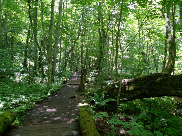 長滿青苔的木棧步道已與自然合而為一,也是美景的一部分了。