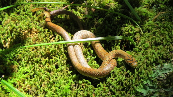 路旁發現一條蛇正慵懶地曬著太陽,花紋好漂亮。