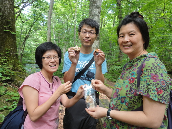雖然累,但是大家累得心甘情願,累得心滿意足,下午2點之後太陽不見了,甚至好像快要下雨了,但是一開始還讓我們看到陽光灑下的「飛金」、「白銀」,我們滿心感恩。皇上甚至說:「光是奧入瀨溪,這一趟青森之行就值得了!」我們完全贊同。