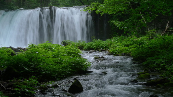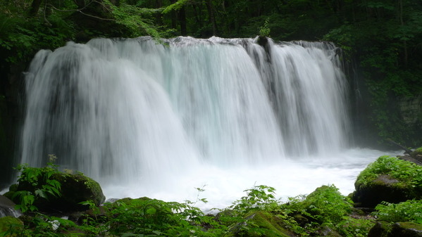 接下來,河邊、馬路邊,接連都是瀑布~飛散落下的「白絲瀑布」