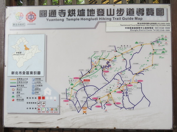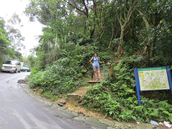 順著柏油路上坡,過了住宅大樓「台北瑞士」之後,轉彎後在馬路左邊有登山步道導覽圖