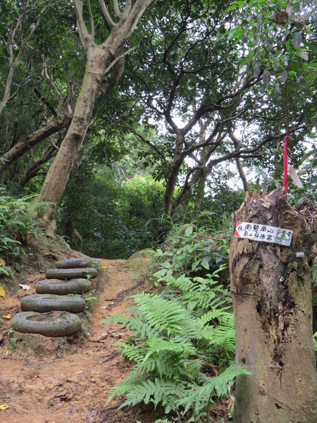 經過左側的萬應宮、資源回收場之後,右側再次出現步道圖,從旁邊山徑上山~