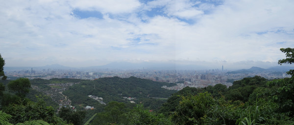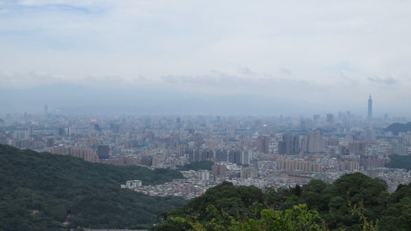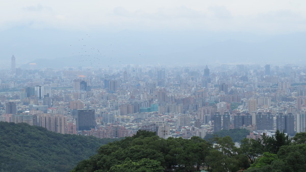 台北盆地景觀盡收眼底,左側高樓是新光三越大樓。