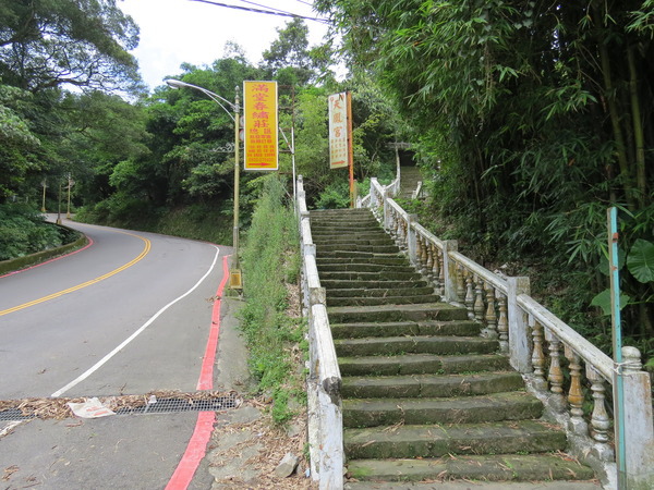 「財神殿」前有免費停車場,從這裡可以直上南勢角山,距離近多了,但是應該會爬樓梯爬到想翻臉。