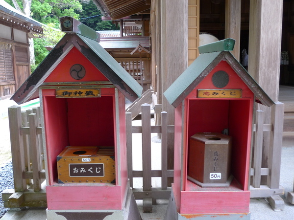 本殿前有兩個「籤筒」,右邊特別設了一個「戀愛籤筒」,其他祈願都在左邊。