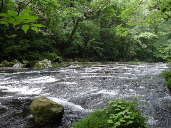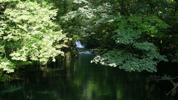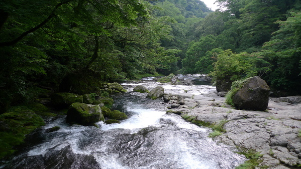 我們手邊並沒有確切的資料將「菊池溪谷」的位置輸入GPS導航,只好看著地圖走「45號道(阿蘇公園菊池線)」西行,花了一段時間來回找路,都不是有遊步道的「菊池溪谷」,但是已經感受到溪谷的美。