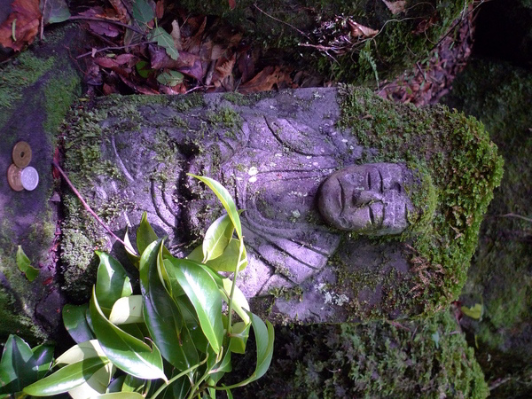 過橋之後,走在林蔭步道上,小徑旁出現一尊石刻地藏。