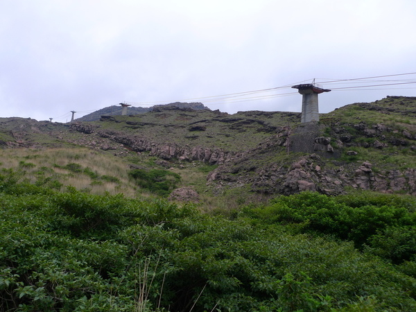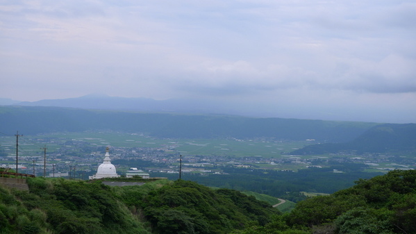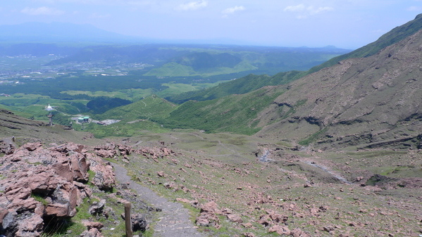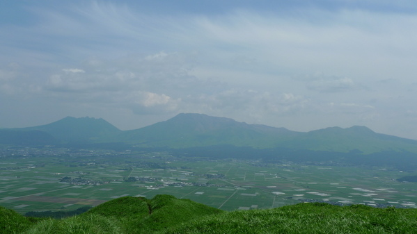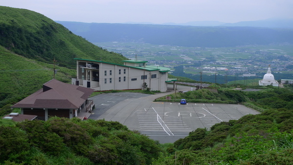 停車場可以眺望「阿蘇谷」和「北外輪山」景色,雲層很低,「外輪山」被雲所蔽。
