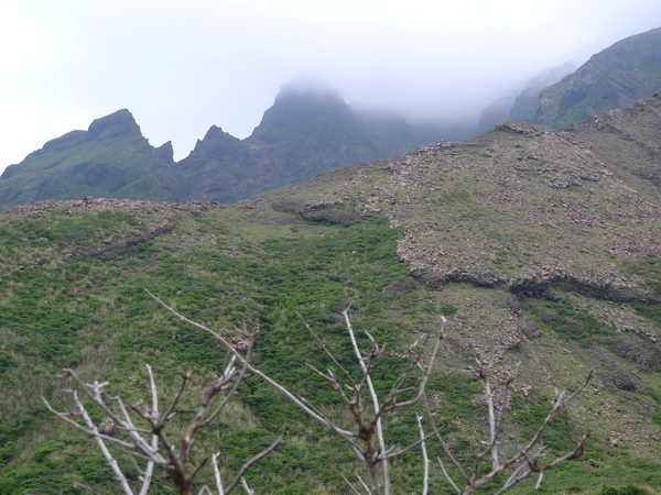 再遇山型特殊的「鷲之峰」和「虎之峰」,今天有陽光,感覺不會那麼像拍魔戒的場景了。