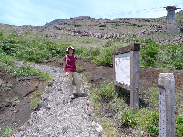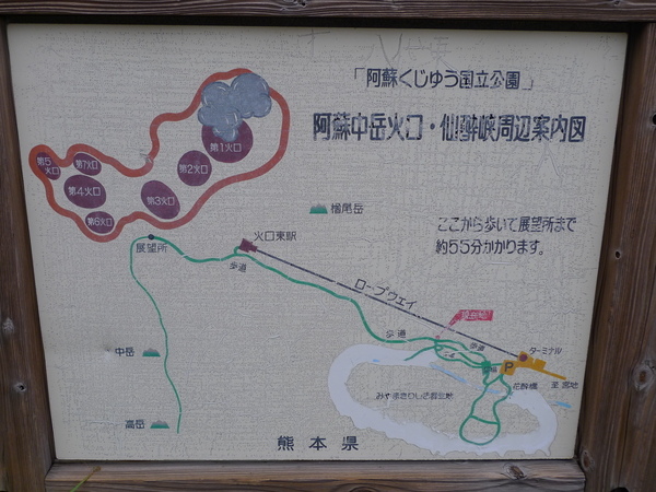 興沖沖來到「阿蘇山西站」,發現纜車停駛,有料道路、登山步道都封鎖,確定無法到達「中岳火口西展望所」,我們驅車來到仙醉峽爬山,目標~「中岳火口東展望所」。