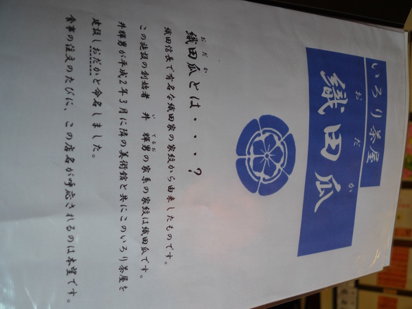 菜單第一頁介紹店名「織田瓜」的由來~原來這是「織田信長」的「五木瓜」家紋,這家店的創始者也源出這個家系。