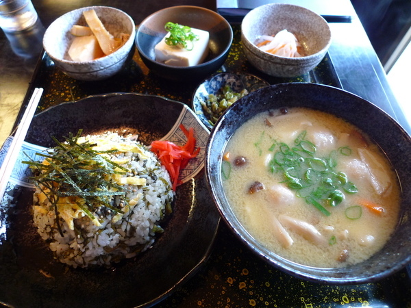 照片和實品幾乎一樣,一碗菜飯、一碗麵疙瘩,四疊小菜,好吃又不貴。