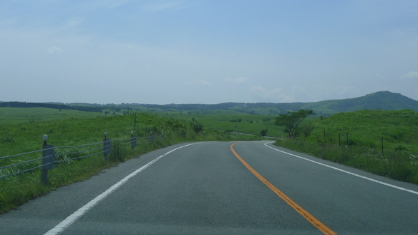 沿著北外輪山邊的「45號道」前往「大觀峰」,這段路又叫「Milkroad」,酪農業發達。