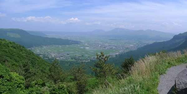 「大觀峰」展望點~這裡是「北外輪山」的最高點,標高936公尺,世界最大「破火山口」中的街道、村落、田園風光,盡收眼底。