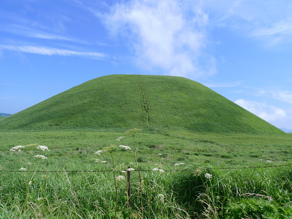 寄生在「杵島岳」山麓的小火山,標高954公尺,形狀很可愛,有人說像倒放的布丁。(參考:米塚形成過程圖解)
