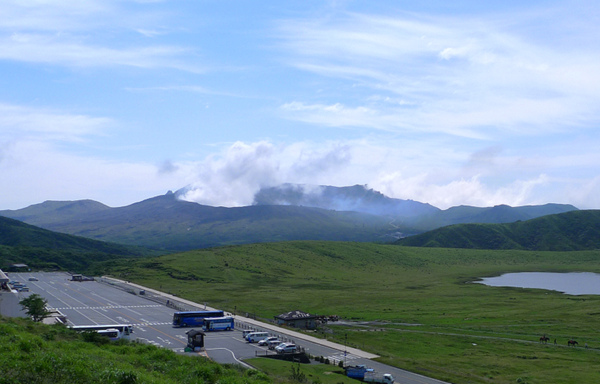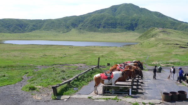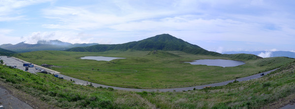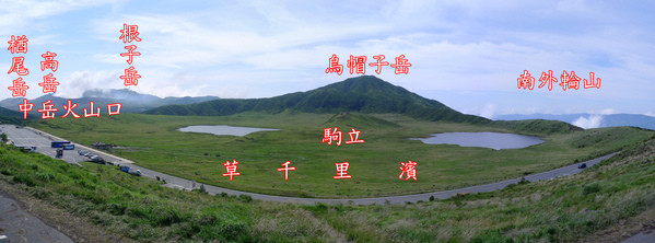 盆地型草原,海拔大約1140公尺,春天到秋天放牧牛馬,草原中間的隆起的「駒立」分隔左右兩潭水池,南側有「烏帽子岳」,東邊(左)可以遠望「中岳」的噴煙。