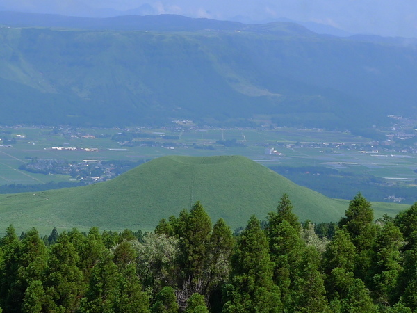 轉身北望~米塚→阿蘇谷→北外輪山,阿蘇山的破火山地形清楚可見。