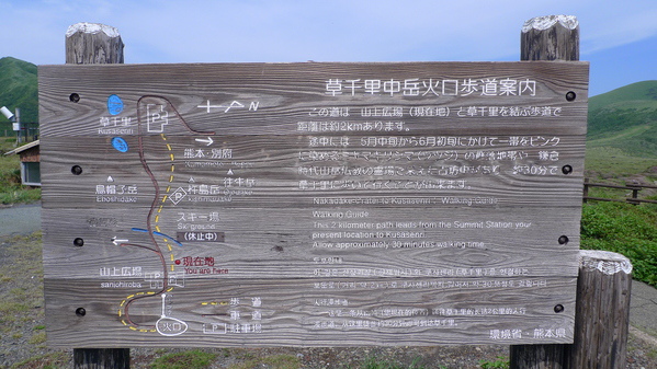 開車上山的有料道路也封閉,開車下山時看到這條步道,不死心,再試看看,是往杵島岳和草千里濱的步道,潸然開車離開