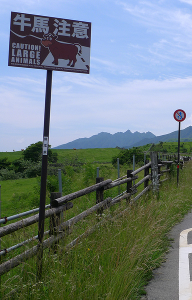 前面車子這輛車載著馬匹,不會是要去做成阿蘇另一種名產~「馬刺」吧??別處不好吃,阿蘇的好吃,真的!