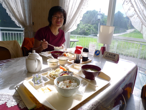 房間沒有網路,到一樓的餐廳,沒想到這裡是吸煙區,住宿網頁中處處標著「禁煙」,我們認真地以為全面禁煙,沒想到連老闆娘也是個菸腔。