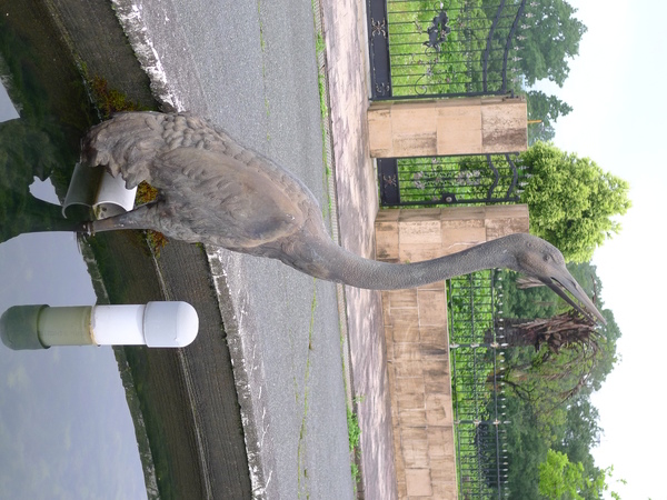 度假村的交通中心~圓環水池,這隻蒼鷺看似優雅,但是口中叼著枯葉,水池因優養化而泛綠……