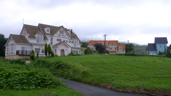 附近都是漂亮的田園別墅,右邊橘色建築就是我們住的「小旅館Elise(プチホテルエリーゼ)」,整個度假村只剩下這一家繼續營業,其他都已停業,有些甚至荒蕪、頹圮。