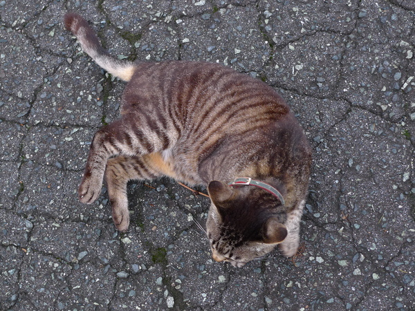 附近的道路龜裂、破洞、塌陷,大大的度假村幾無人煙,貓比人多。