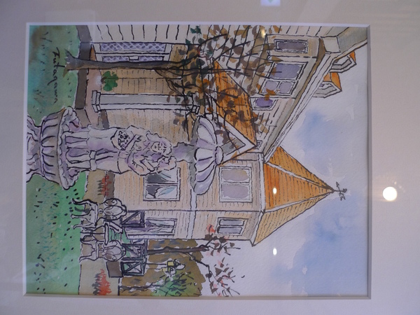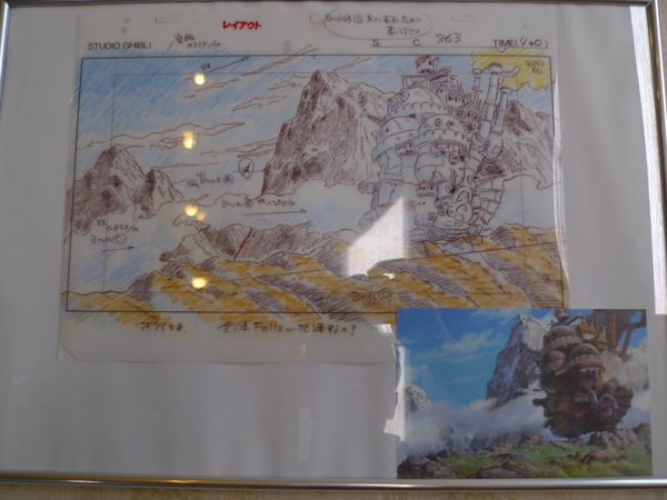 牆上掛著好多宮崎駿的原版畫,我們也喜歡宮崎駿。