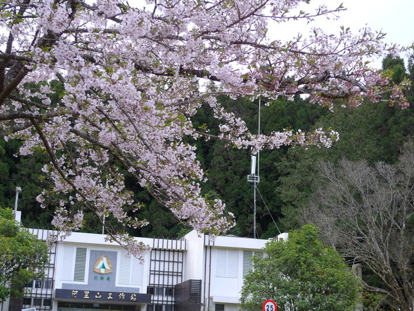 我們住的「阿里山賓館」往下走不遠就是「阿里山工作站」,因地利之便,很容易就到櫻王身邊取景。