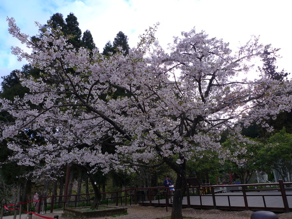 在阿里山這裡看櫻花看到越來越不知足,不是整片的櫻花已經吸引不了我們,唯獨這棵「櫻王」,即使獨自佇立,仍讓我們流連徙倚,不捨離去。