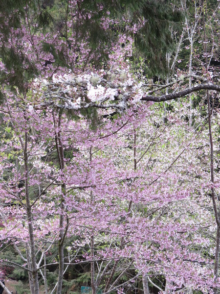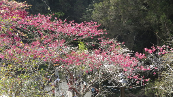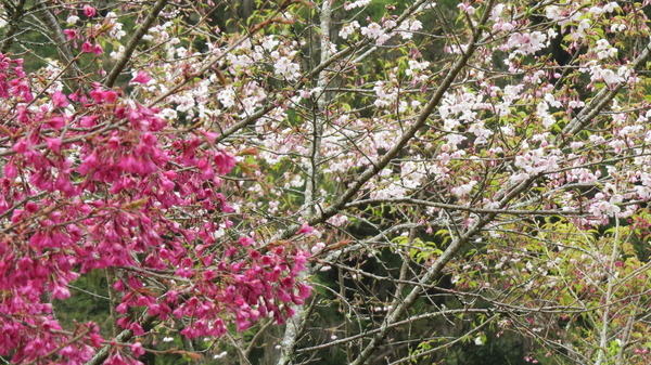 旁邊坡地是「緋寒櫻」的聚落,不同的櫻花,在「櫻王」領地上恣意盛開著。