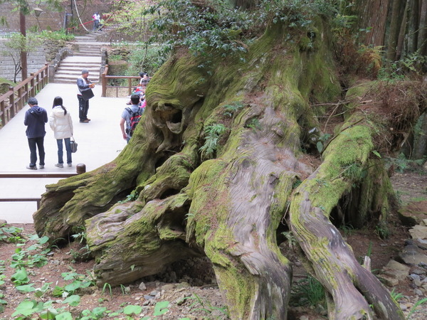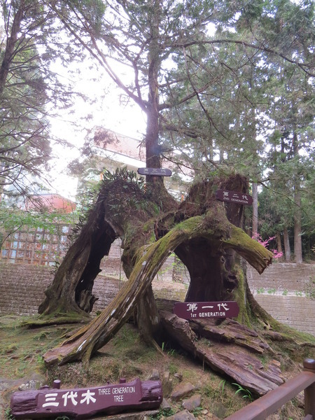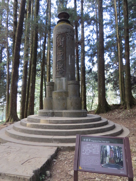 「樹靈塔」~日本人認為萬物皆有靈,所以在日據時代開發阿里山檜木時就立了這座塔,塔身代表樹幹,塔旁刻痕代表鋸木痕跡,圓形台階代表年輪,一圈500年。