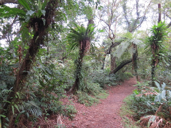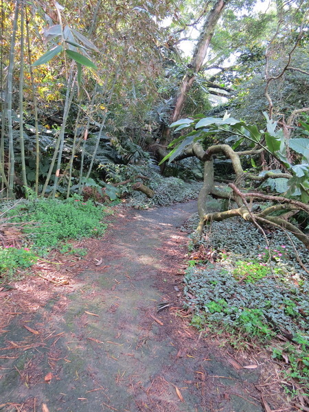 繼續往前走了大約五分鐘,在兩棵筆筒樹中間發現一條明顯的路徑,走進去瞧瞧~~