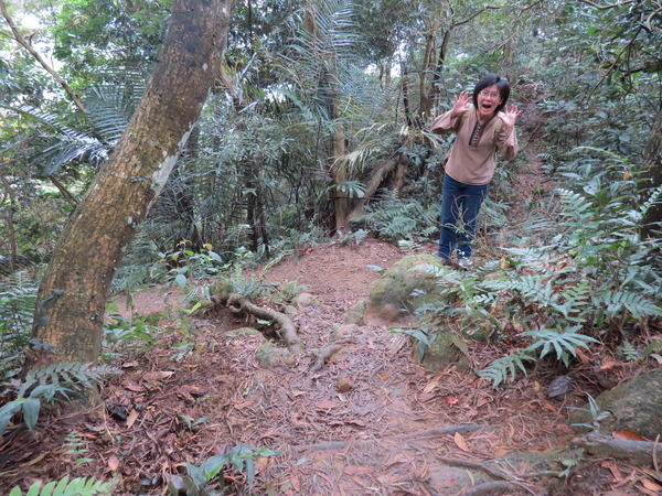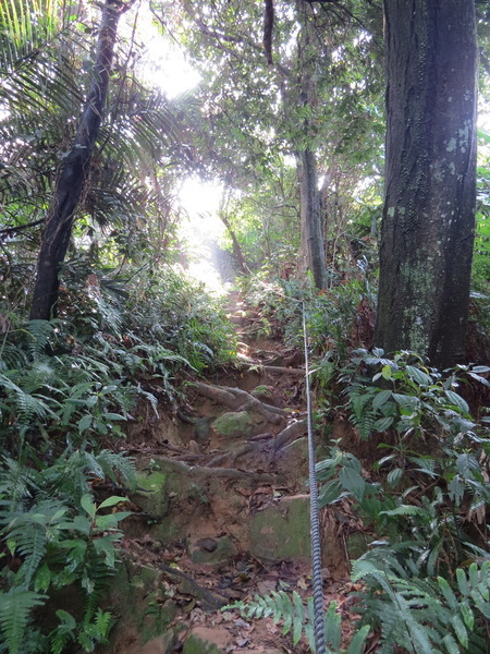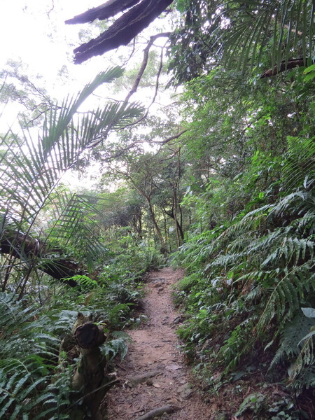 之後都是原始山徑,昨天下雨,稍微泥濘,每次爬溪洲山剛開始都覺得又濕又悶,很不舒服,今天還是一樣,熱到想剃光頭,而且蚊子已經出現了。