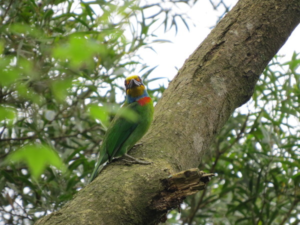 照相時,一隻五色鳥站在樹上盯著我們瞧,「咕嚕嚕~」地和我們說著話,好可愛!