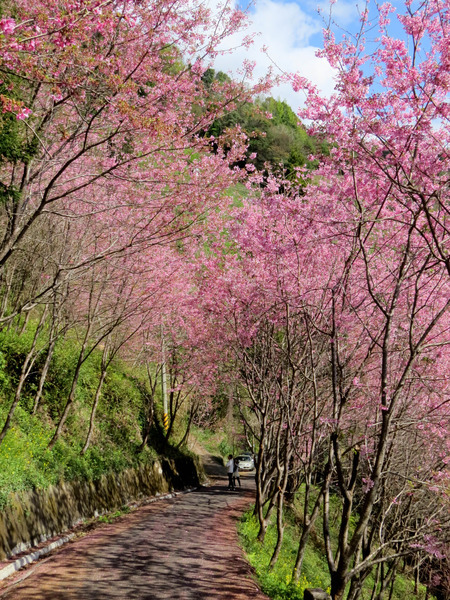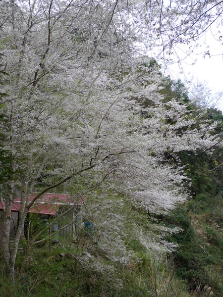 今天騎機車,索性憑感覺抓大概方向沿山路亂騎,騎了一段路,看到這幾棵白色櫻花樹愈來愈近了,繼續向前。